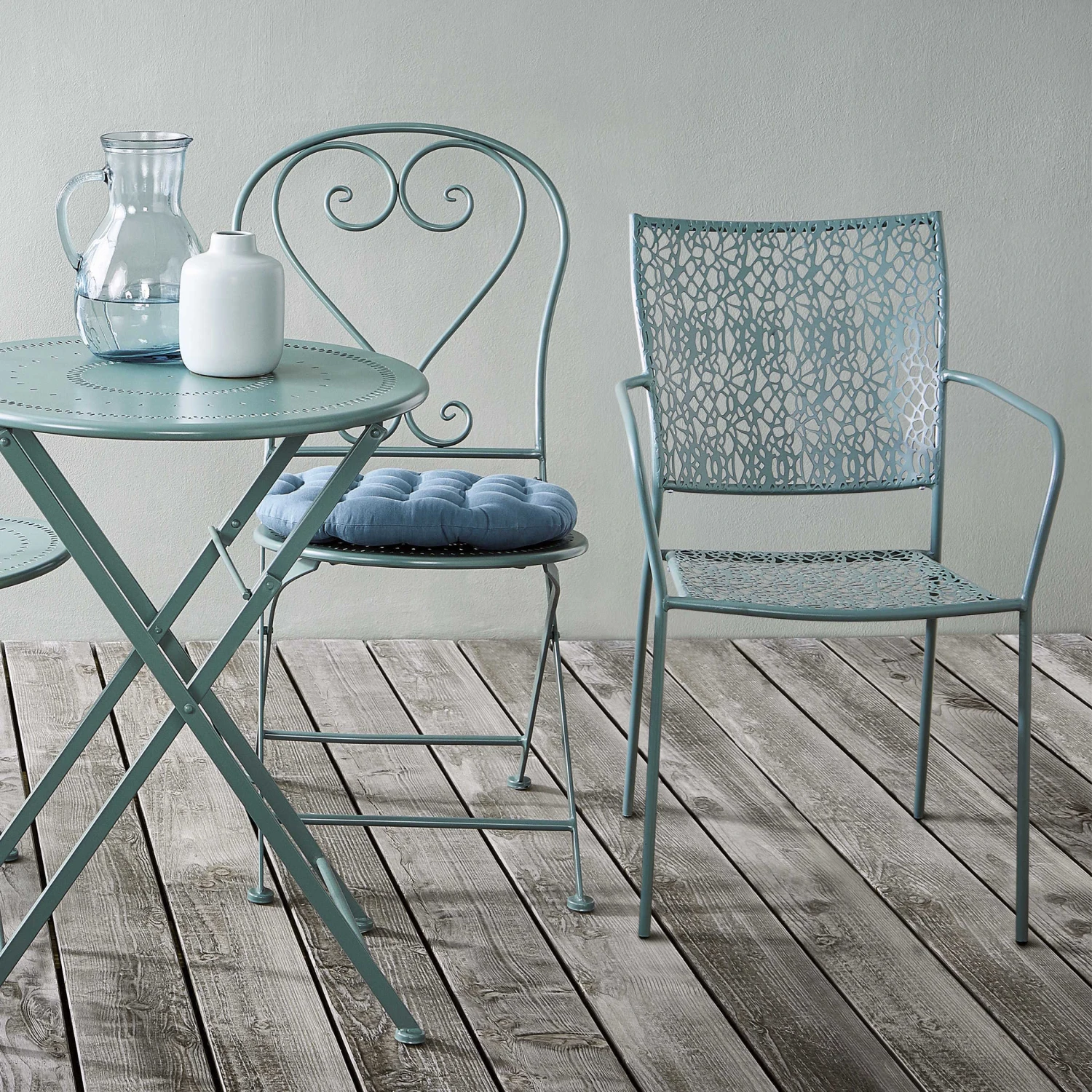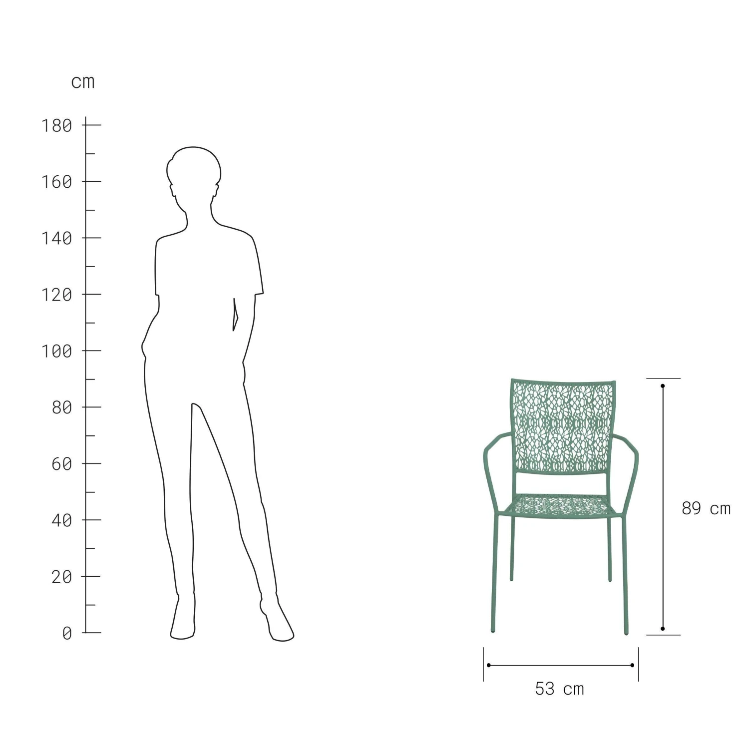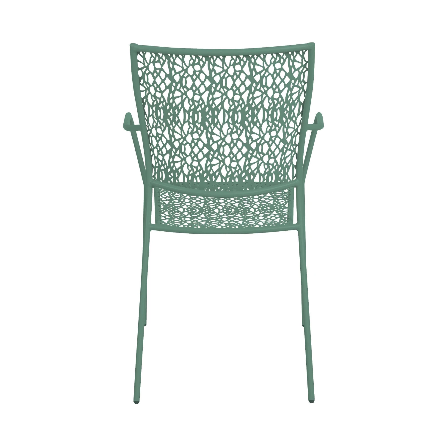 Moderner Look mit romantischem Akzent: Beim stapelbaren Nancy Gartenstuhl aus Eisen für Balkon, Terrasse oder Garten erinnern Sitzfläche und Rückenlehne an filigrane Spitze. Einfach wunderbar, um draußen vor sich hin zu träumen. In weiteren Farben erhältlich.