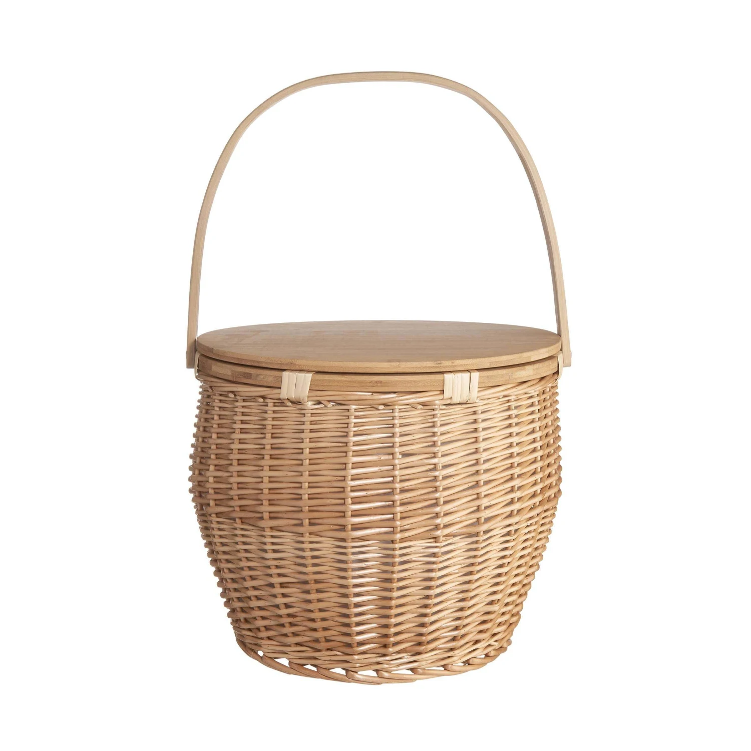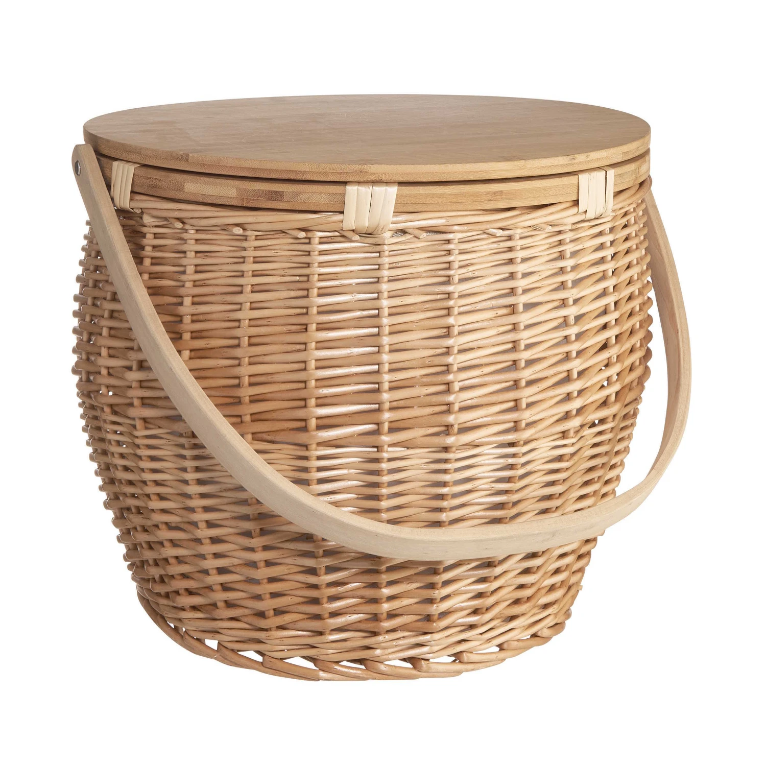 Beim nächsten Ausflug ins Grüne ist der naturfarbene The Great Outdoors Picknickkorb mit von der Partie. Unter dem abnehmbaren Bambus Deckel, der sich beim Picknick als Servierplatte nützlich macht, hält eine isolierte Kühltasche mit Reißverschluss Ihre Salate, Sandwiches und Drinks schön kühl. Der hochwertige Korb mit Holzgriff ist handgefertigt, lebensmittelecht und kann mit einem feuchten Tuch gereinigt werden.