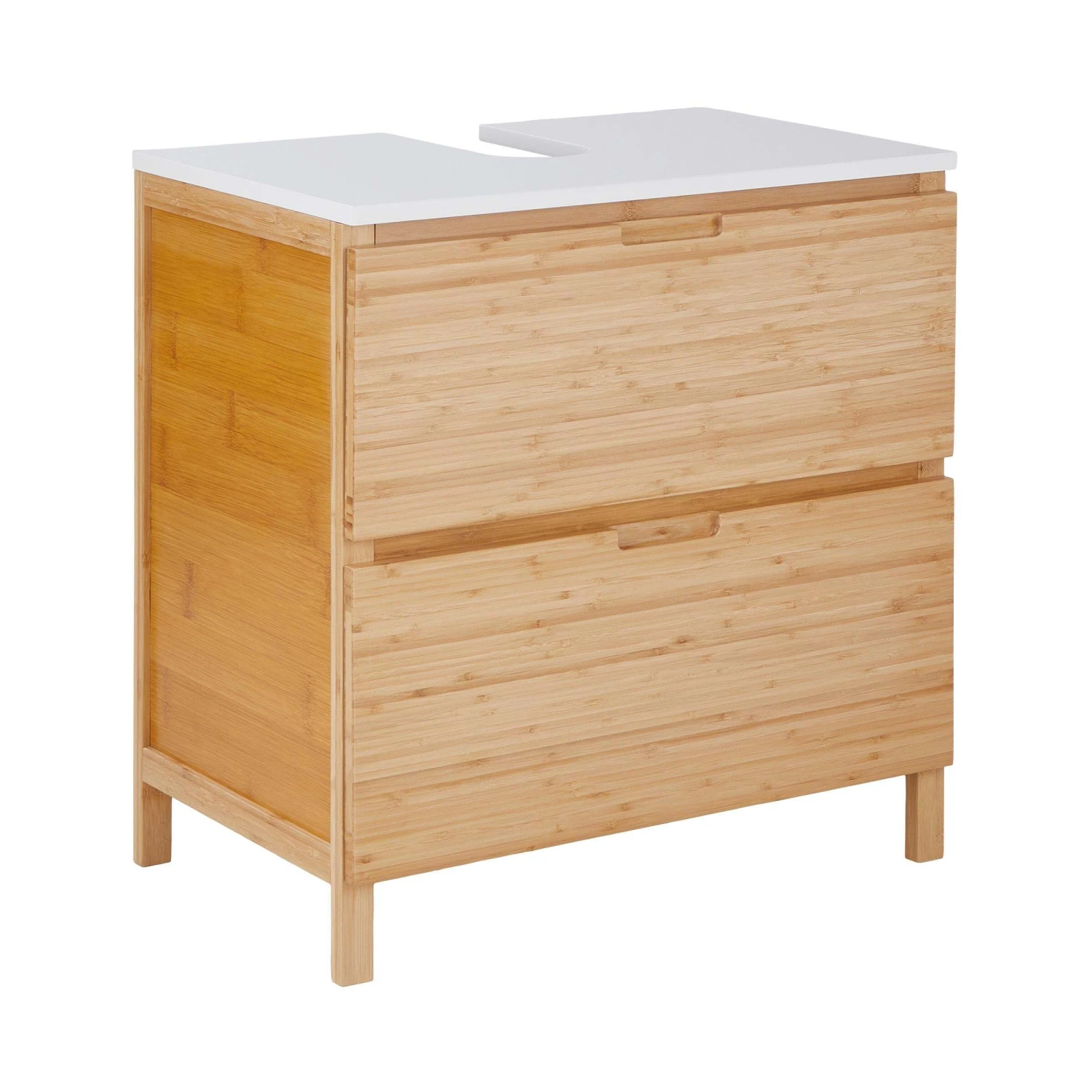 Platz und Ordnung schaffen Sie in Ihrem Badezimmer ganz dekorativ mit dem White Sands Waschbeckenunterschrank mit Klappe und Schublade. In diesem modernen Möbel mit wertiger Optik lassen sich alle möglichen Badezimmerartikel verstauen. Das praktische Schränkchen setzt dabei auf die Materialien MDF und Bambus, der in Sachen Nachhaltigkeit und Natürlichkeit punktet.